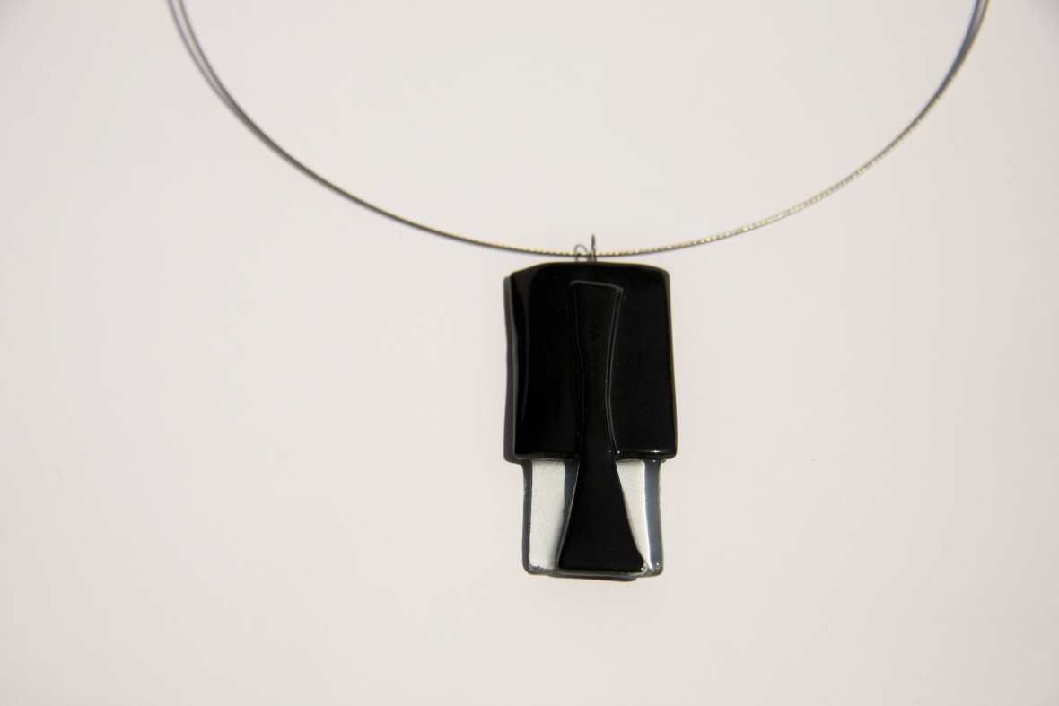 Unikatna ogrlica iz taljenega stekla v črni barvi.