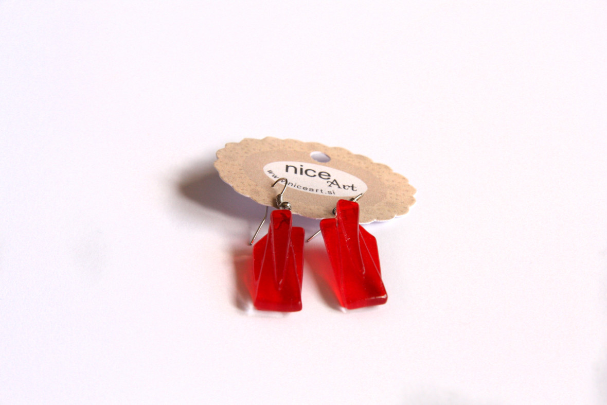 Unikatni uhani iz taljenega stekla v rdeči barvi.