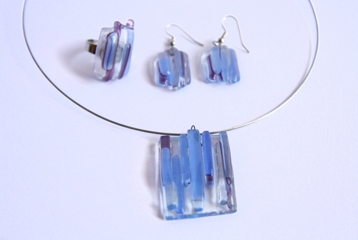 Ogrlica je unikatno oblikovana in izdelana iz taljenega stekla. Steklen nakit je, ne glede na svojo krhko vhodno surovino, trden, predvsem pa čudovitega sijaja. Kovinski deli nakita so brez niklja.